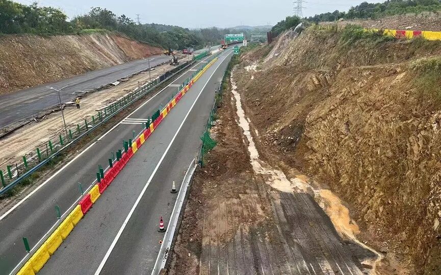 武天高速互通施工,K411许广向全部封闭,广许向单幅双向通行。