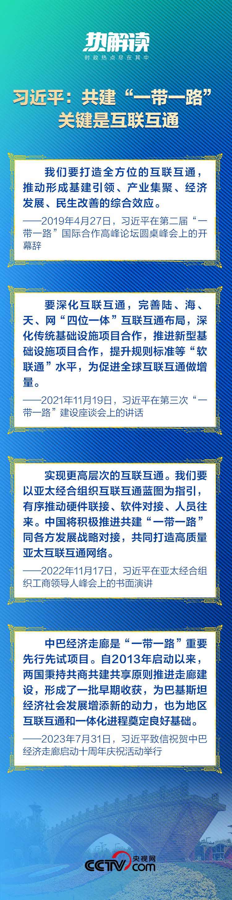 习近平主席曾说,共建“一带一路”,关键是互联互通,并多次在不同场合提出要深化“一带一路”互联互通、实现更高层次的互联互通。