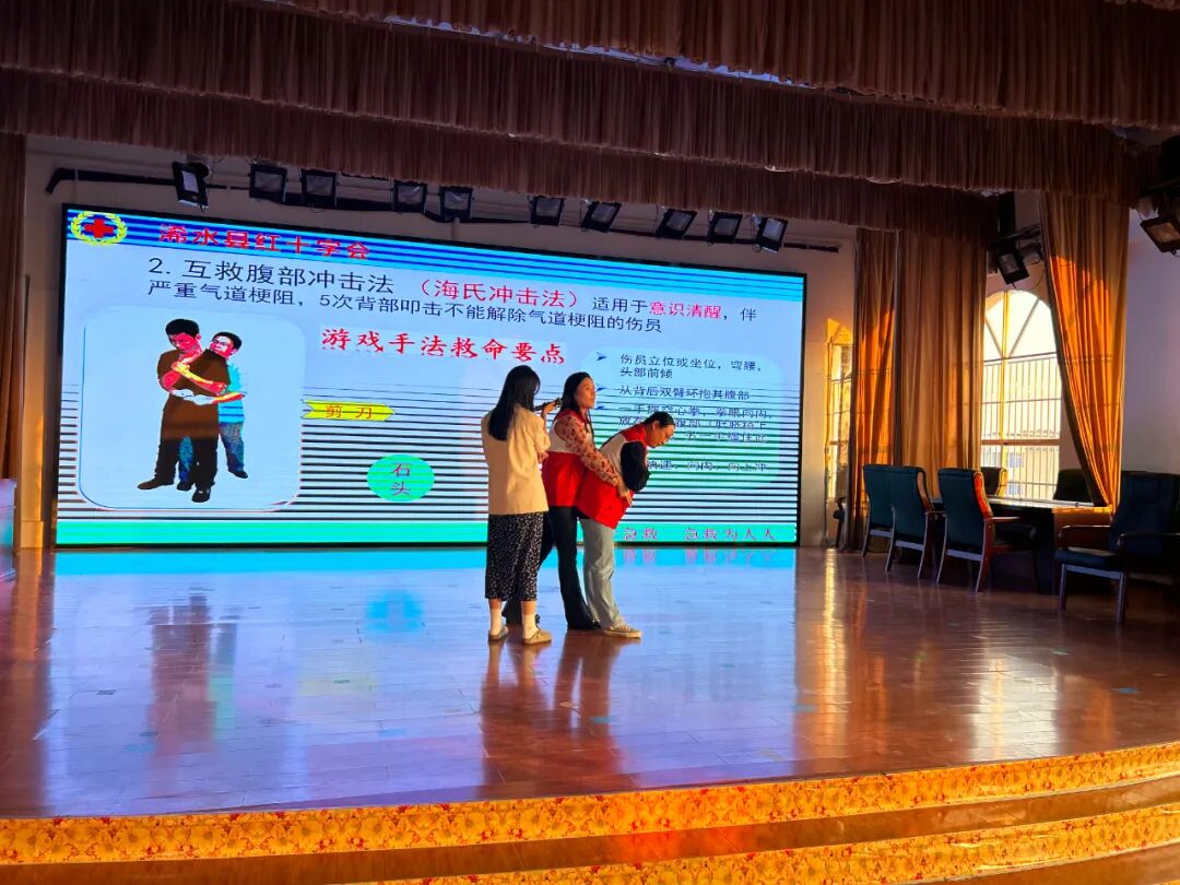 培训活动中,县红十字会医生进行了海姆立克急救法现场演示。