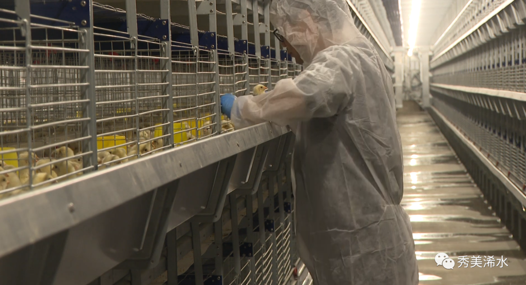 楚红养殖技术服务部负责人 严友三:过去我们养鸡,一对夫妻或者两个人两亩地只能养5000只鸡,那么现在随着设备改进提升了之后,现在两亩地能养十万只鸡,只要一个人,人工的利用率提高了20倍,土地的利用率也提高了20倍。