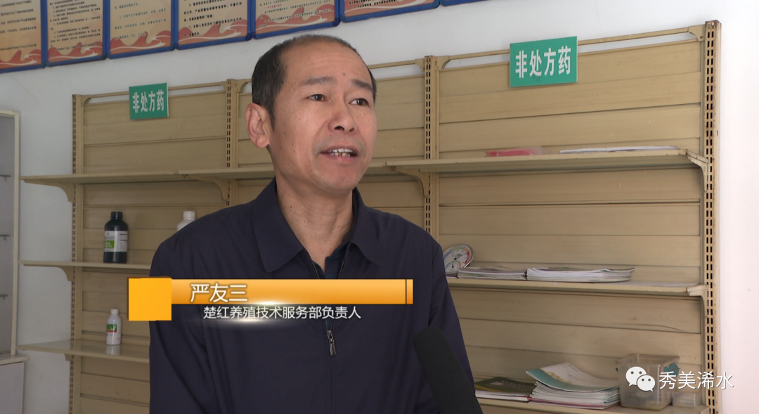 楚红养殖技术服务部负责人 严友三:只有技术好,养殖的风险才能降得下来,我们这个行业呢,现在规定要执业兽医师,专门为养殖提供技术服务。