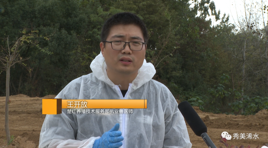 楚红养殖技术服务部执业兽医师 王开放:养鸡主要是以养为主,以防为辅。我们作为技术人员,每一个养殖阶段去防止它发生这一阶段性的疾病,或者是通过饲养管理去控制疾病。让他们(养殖企业)养好鸡,挣大钱。