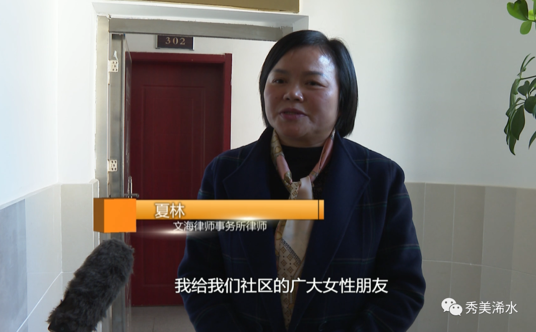 文海律师事务所律师 夏林:我给我们社区的广大女性朋友讲述了女性在婚姻家庭生活中财产权益保护的方法,希望能帮助我们广大女性朋友提高自我防护的能力,做一个有智慧的女人。