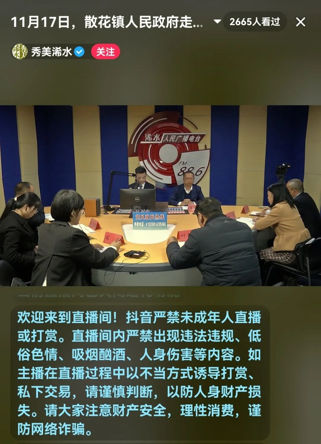 11月17日上午,散花镇党委一班人及各科室相关负责人,参加浠水县人民广播电台“党风政风热线”专题直播节目。通过热线平台,与广大居民朋友、网友真诚交流,耐心解答。