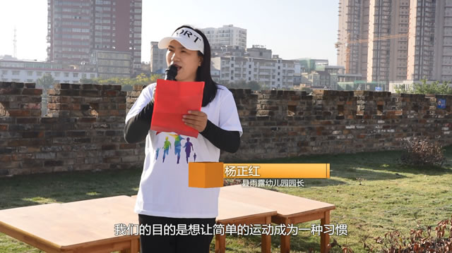 县雨露幼儿园园长 杨正红:我们的目的是想让简单的运动成为一种习惯,让孩子们成为运动小达人,同时更好的增进亲子关系,用心关爱,用爱陪伴,让我们感受奔跑的乐趣,享受成功的喜悦。