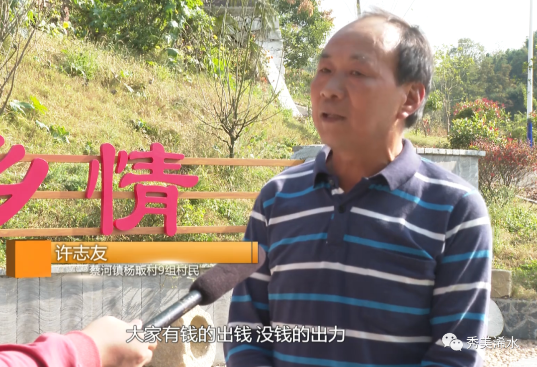 蔡河镇杨畈村9组村民 许志友:我们村建设好,大家要爱护它、保护好它,有钱的出钱,没钱的出力。