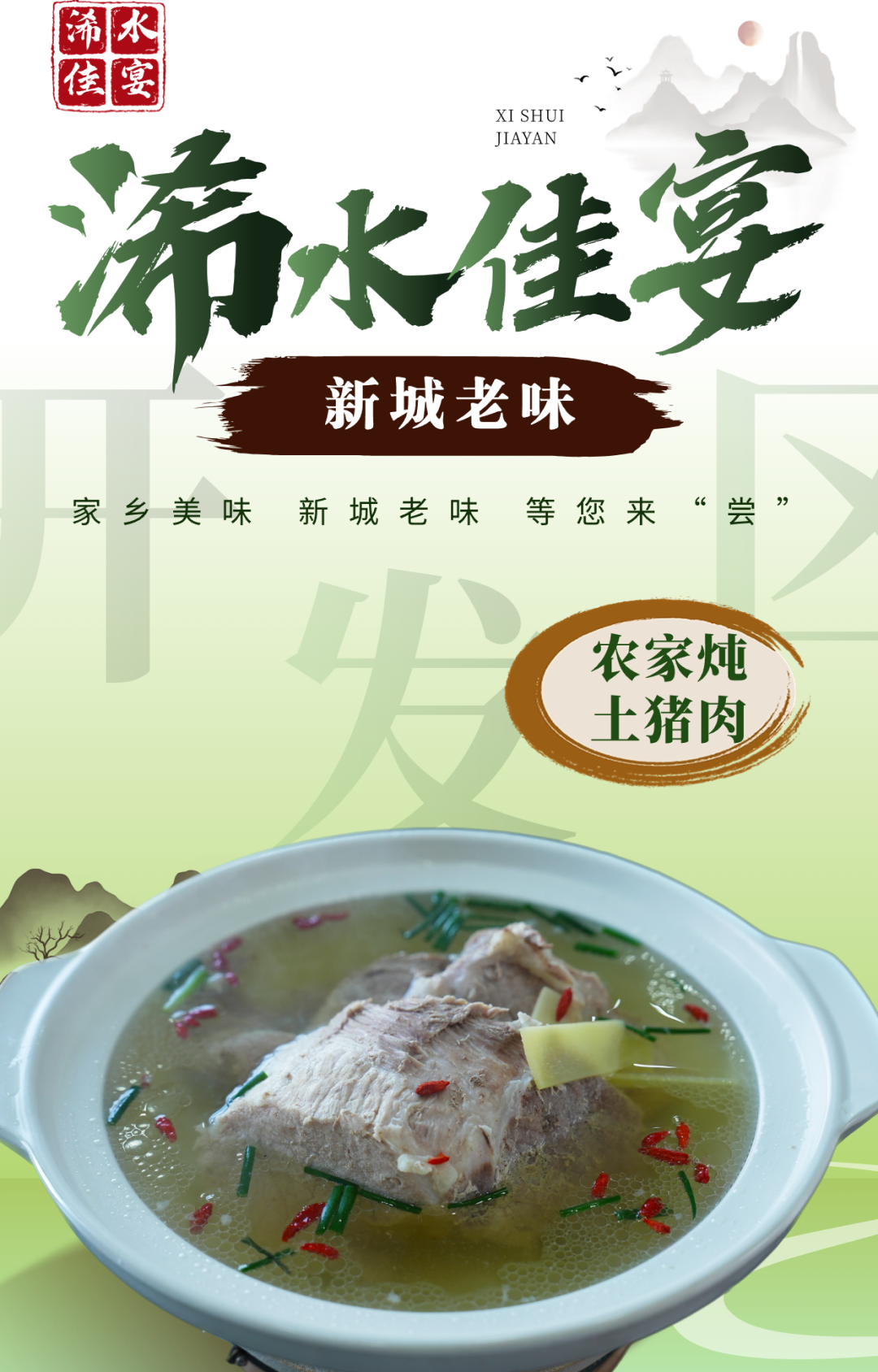 菜品简介:选用正宗的农家散养黑毛猪前夹肉,用纯正的禄叫河山泉水放入砂锅中,加入生姜、倒入适量糯米白酒,慢火炖至4小时左右。