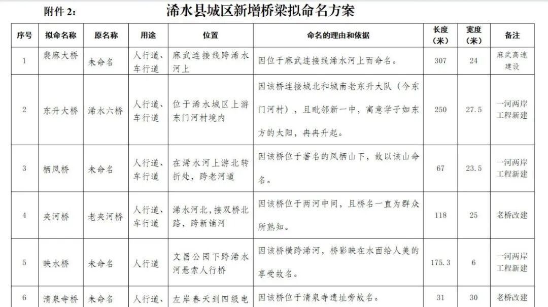 2、浠水县城区新增桥梁拟命名方案