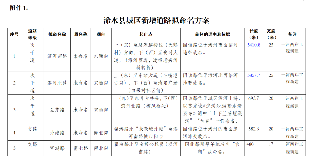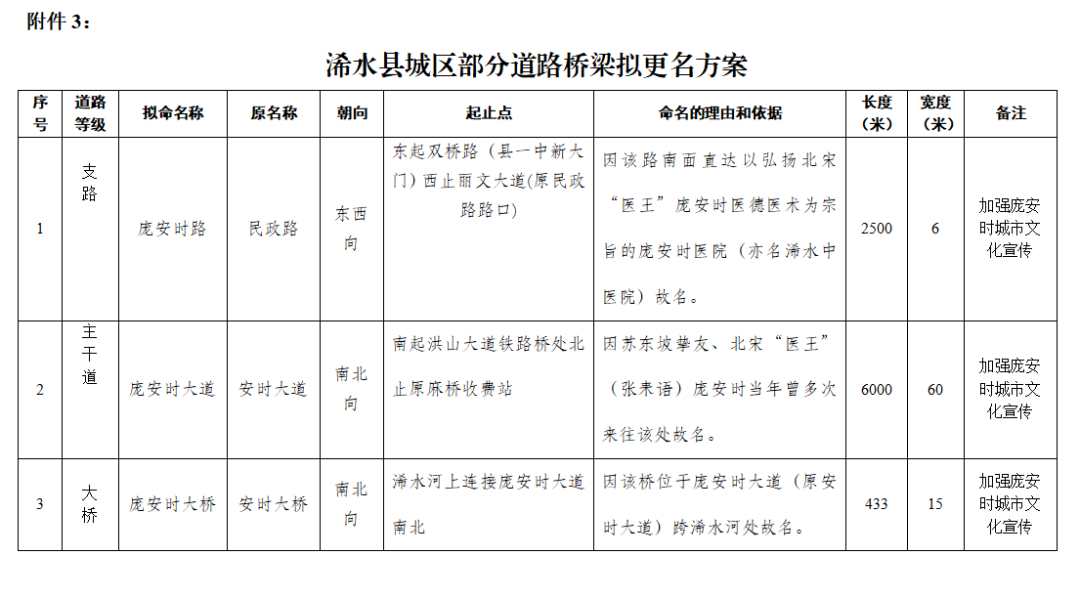 为加大地名命名社会参与度,丰富地名文化内涵,提高社会对地名的认同感,现就我县城区部分道路、桥梁拟命名(更名)向社会公开征求意见。希望全县居民对道路、桥梁的拟命名(更名)提出宝贵参考意见,同时也可以提出新的地名命名意见,并附地名命名的理由和寓意,于2023年12月15日前反馈给我们,我们将综合反馈的意见对道路命名(更名)方案进行完善。感谢您的参与和支持!