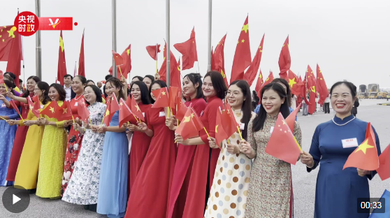 ↑2023年12月9日,列车在越南河内吉灵-河东轻轨线上行驶。新华社记者 程一恒 摄