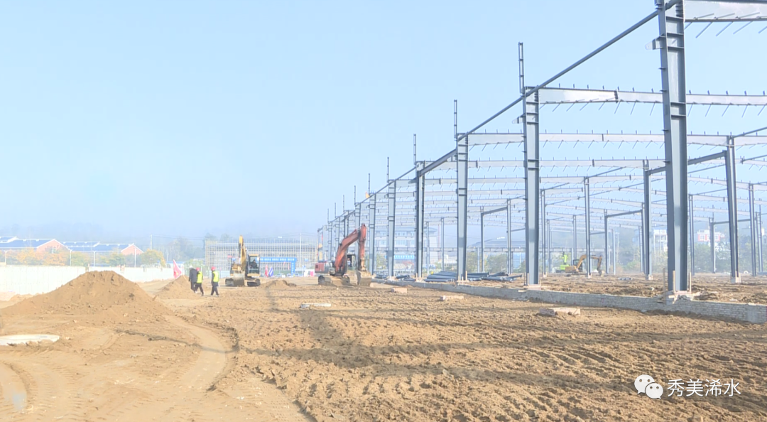 在县级物流配送中心项目建设现场,施工人员抢抓眼下晴好天气,开足马力抓进度,全力打好项目建设收官战。