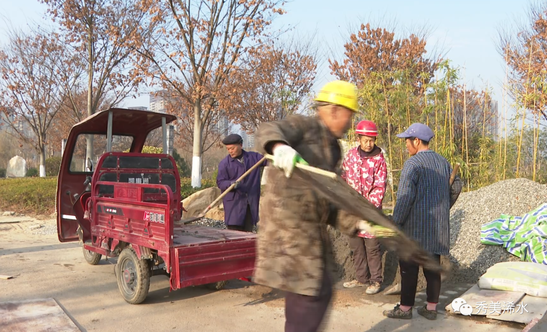 这几天,位于我县北城新区的窑湖公园正在如火如荼地改造当中,十几名工人一大早就来到施工现场,忙着加装路标指示牌和介绍牌等装饰设施。