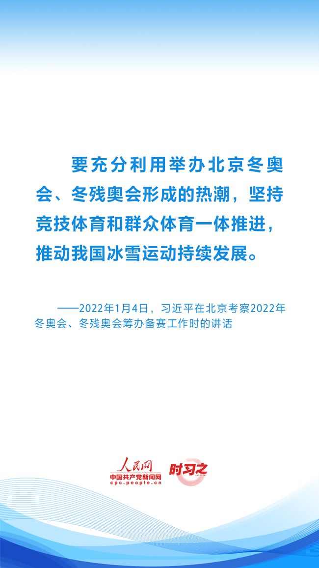 推动我国冰雪运动跨越式发展是实现第二个百年奋斗目标的重要组成部分。习近平总书记多次在不同场合表达对冰雪运动的重视。在他的亲自谋划、持续推动下,“三亿人参与冰雪运动”愿景成为现实,中国冰雪运动跨过山海关,走进全国各地。