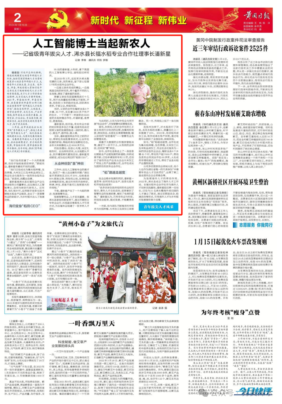 《人工智能博士当起新农人——记省级青年拔尖人才、浠水县长福水稻专业合作社理事长潘新星》