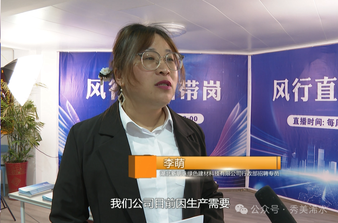 直播过程中,主播还邀请了各大招工企业负责人一同出镜,面对面与求职者沟通,现场提供多种求职报名方式,有意向的求职者可一键投递简历。首个进入直播间的企业负责人来自湖北新明珠绿色建材科技有限公司,地址位于我县兰溪镇,是行业杰出的绿色环保建筑陶瓷企业。