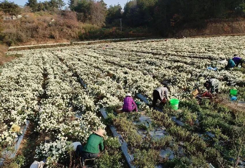据悉,徐家坳村是新儒学大师徐复观的故乡,村里的菊花种植是从2020年开始的,经历三年的逐步壮大,现今已成为当地的特色产业,拓宽村民增收渠道。种植菊花的农户年均销售收入可达12866元,带动就业近百人。浓郁的菊花墙下,尽显儒家书卷气息。