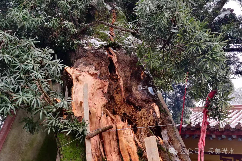 近日,我县迎来冰冻雨雪天气,给全县古树名木的生长和生存带来一定威胁,天然寺林场老庙处一级古树罗汉松受灾严重。2月5日,县林业局相关负责人带领林科所、国有林场专业技术人员现场察看受灾情况。2月6日,县林业局古树名木保护工作专班组织专业技术人员到天然寺林场现场开展抢救受灾古树行动。