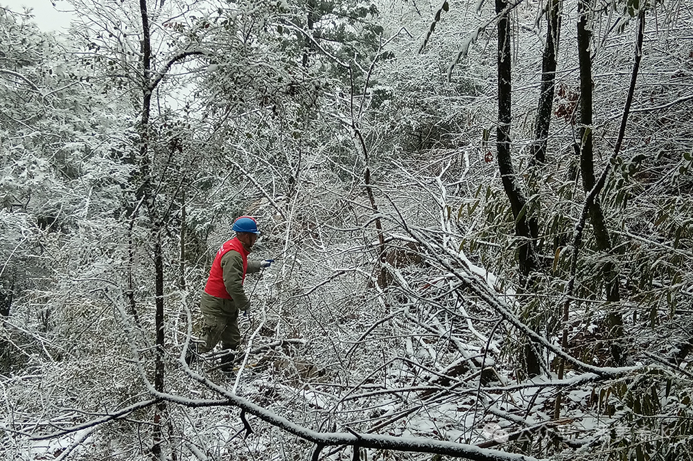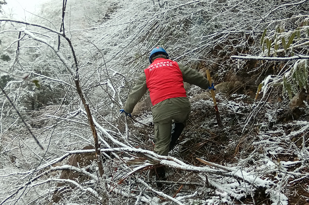 经过整整7个小时的“浴雪奋战”,抢修队从海拔400米的斗方山上,展放导线2000余米,于下午14点时完成线路接火,恢复了斗方山风景区的供电。