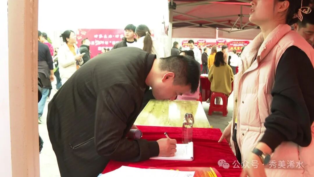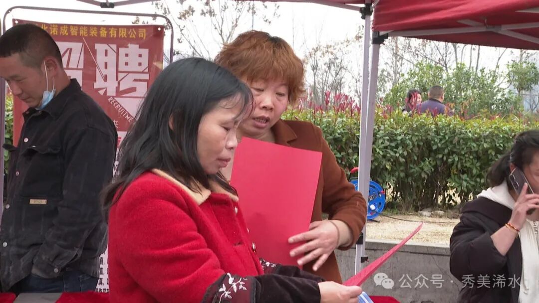 活动的浩大声势还吸引了一些周边群众慕名前来参与。蒋先生一直在外地务工,陪同妻儿外出购物时偶然走进活动现场,便想为留守在家的妻子找一份家门口的工作。