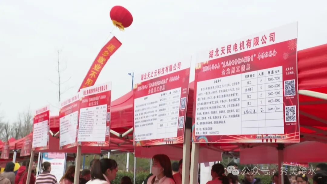 副县长夏清、熊汉平,县政协副主席夏世清出席仪式。活动在精彩的文艺节目中拉开帷幕,招聘现场人潮涌动,求职者络绎不绝,纷纷到招工企业摊位前查看岗位信息,了解用工需求、薪资待遇等情况,找寻心仪的工作岗位。