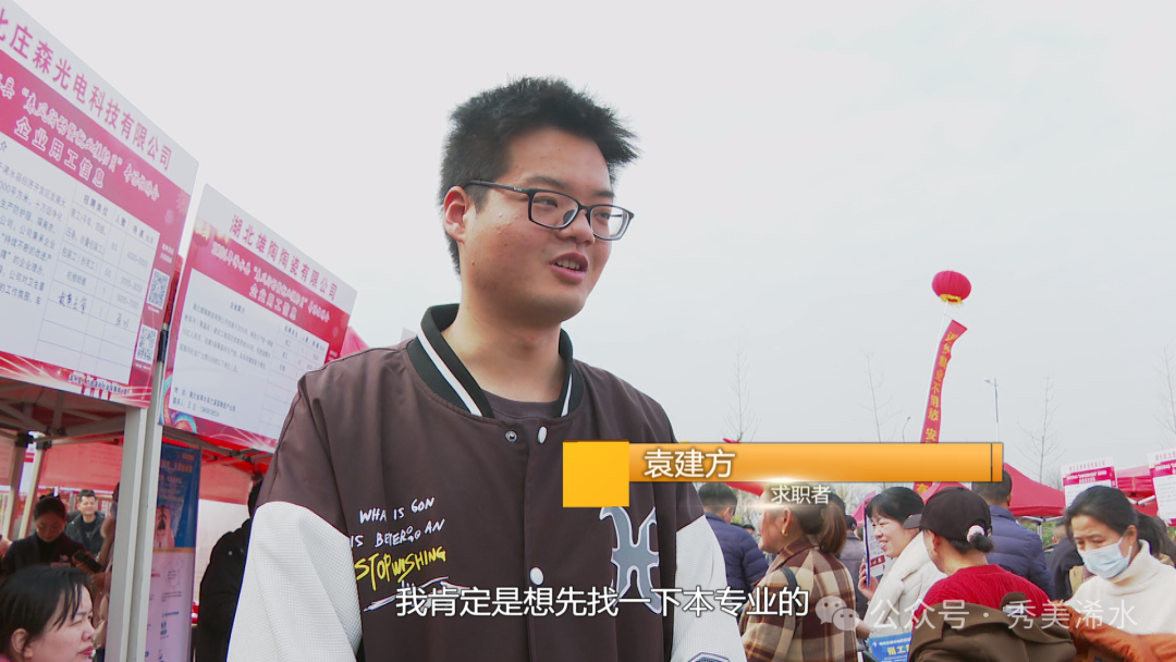 求职者 袁建方:我肯定是想先找一下本专业的,机械自动化这方面的。因为我刚工作,薪资方面要求比较低的,主要是想学点技术,出去其实也是可以找的,但是感觉离家近好一点。招聘会岗位还是蛮多的,给我们提供了非常多的就业机会,我觉得还是蛮友好的。