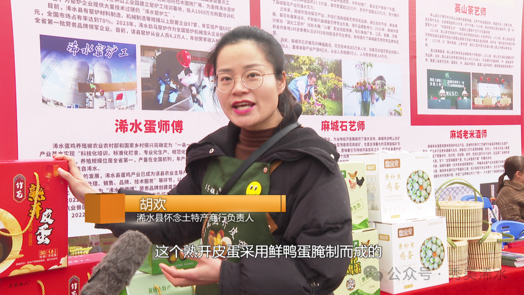 “浠水蛋师傅”劳务品牌展台前,土鸡汤、熟开皮蛋、卤鸡蛋、炸鸡腿、烤鸡翅等美食香味四溢,吸引了不少嘉宾参观、驻足品尝。