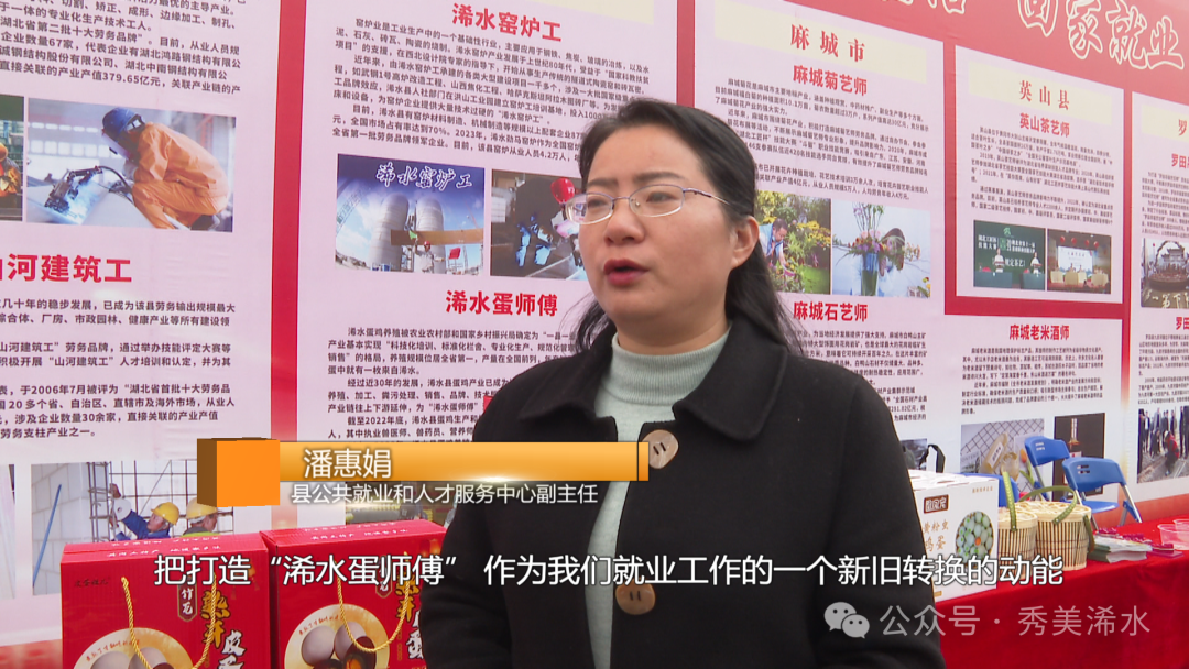 县公共就业和人才服务中心副主任 潘惠娟:把这个提升劳务品牌,打造“浠水蛋师傅”,作为我们就业工作的一个新旧转换的动能,促进我县就业工作从充分就业向高质量就业方向转变。