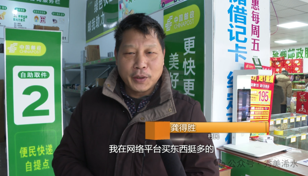 村民 龚得胜:我在网络平台买东西挺多的,每次来拿件都挺方便,一来就拿到了。以前要跑很远去拿,现在在本村就可以拿到。