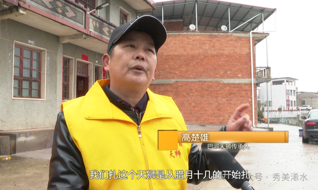 巴河天狮传承人 高楚雄:为了这个元宵节的喜庆活动,我们扎这个天狮是从腊月十几的开始扎,要六个人以上扎半个月,我们这个东西是从头到尾全手工,没有机械操作。
