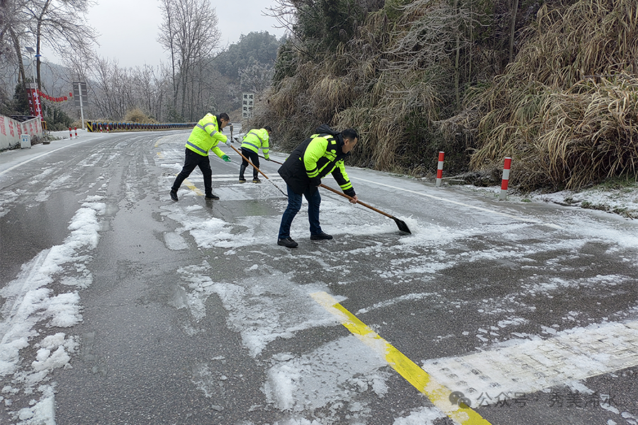 在S201中大线查山段,浠水县交通运输局集中人力在S201中大线查山段除冰保畅,清理各干线公路倒伏树木,全力保障道路交通安全。截至上午十点左右,该路段已恢复正常通行。