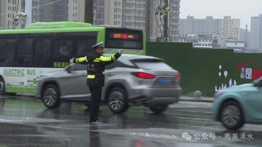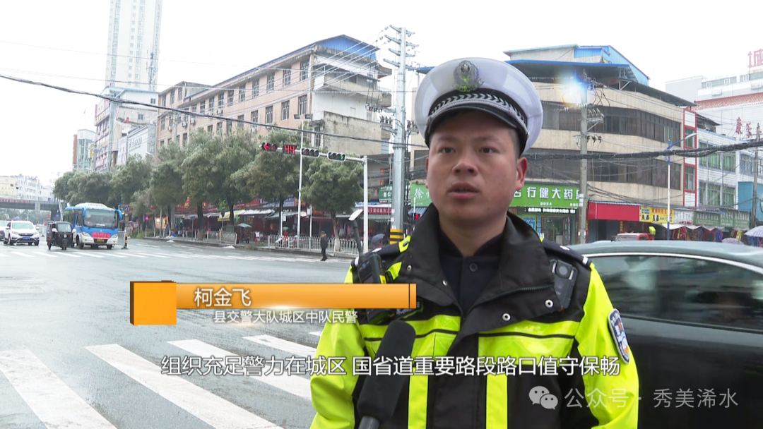 县交警大队城区中队民警 柯金飞:自昨晚冻雨天气出现以来,交警大队迅速启动低温雨雪冰冻天气应急预案,组织充足警力在城区、国省道重要路段路口值守保畅,通过临时交通管制,远端封控、警车压速带道提醒车辆安全有序通行。