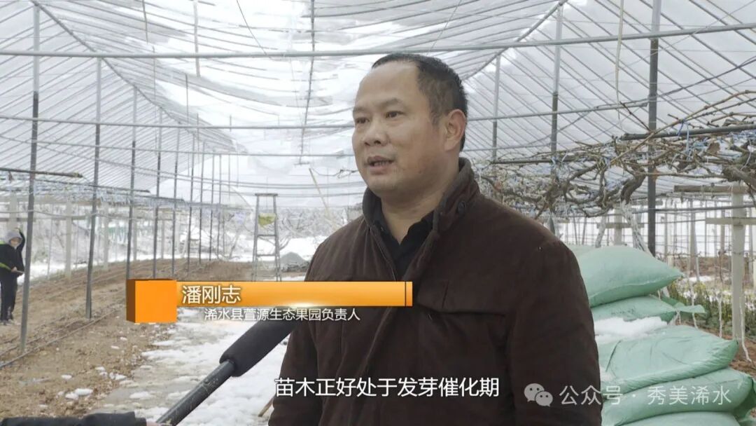 冻雨造成冻害,也对农业生产设施带来极大影响。眼前的这家基地是葡萄种植生态园,总共有260亩,其中大棚面积有100亩,生态园负责人潘刚志在农技专家的建议下,正在对大棚进行割膜保棚。