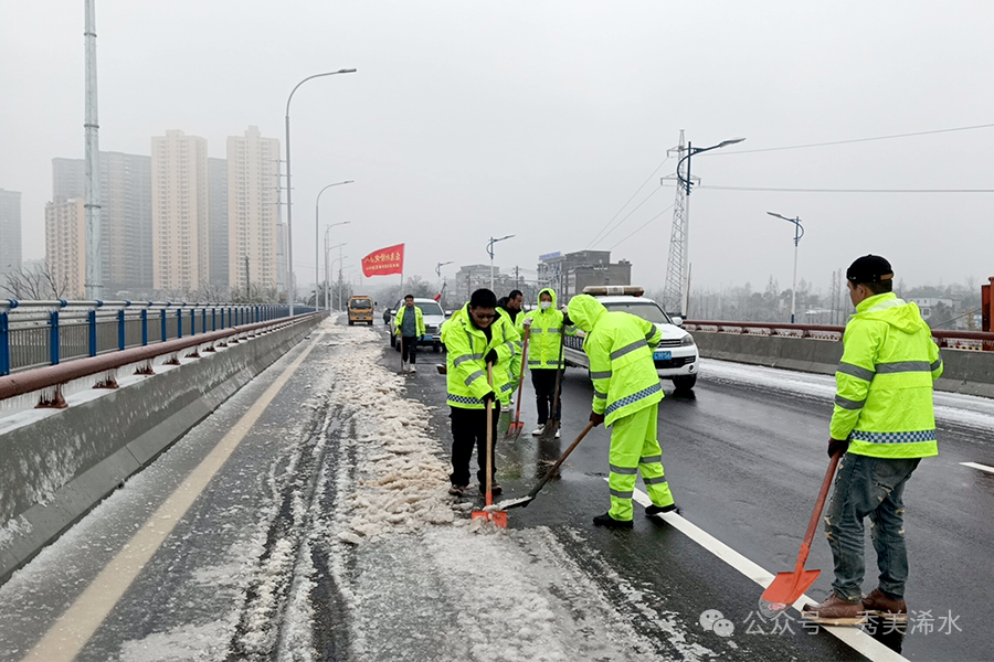 为确保城区主要道路桥梁畅通,浠水县对重点路段桥梁实行责任包保,开展清积雪、清路障、保畅通行动。2月22日以来,各包保单位上足人力、机械,及时及时清理道路冰冻积雪,清除树木断枝、垂枝等路障,确保道路畅通和过往行人车辆安全。