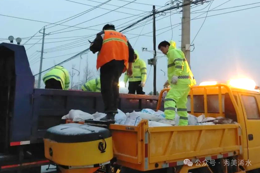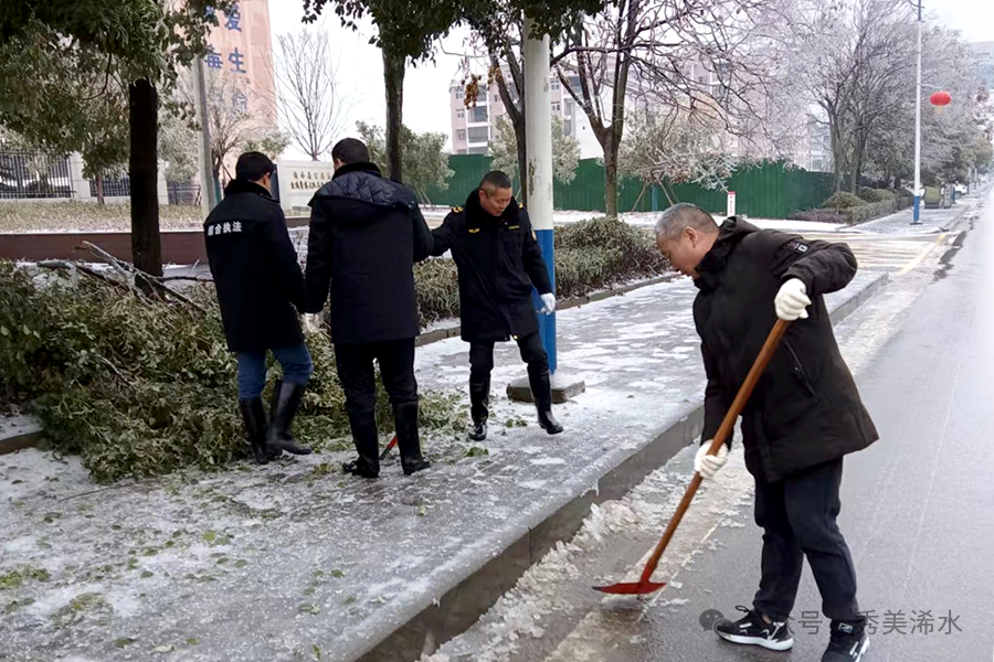 ▲县城管执法局组织局机关、园林服务中心、环卫所和执法大队党员干部210余人,环节工人230余人,园林绿化工人150余人,特种作业车辆45台,执法车辆30余台,对重点路段进行扫雪除冰和清理残枝断木。2月22日抛洒融雪盐24吨,清理重要桥梁6座,清运断木残枝160多车。