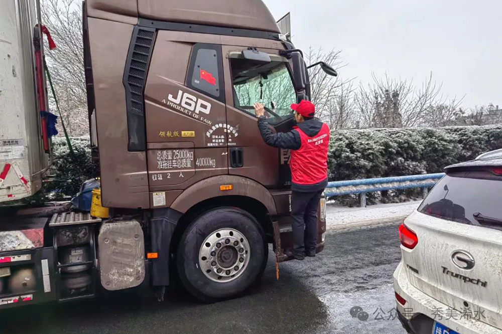 众人拾柴火焰高。周边村民看到路上车流量大,工作人员力量有限,纷纷加入志愿队伍,对司乘人员主动伸出援助之手,成就了一段双向奔赴的人间温情。