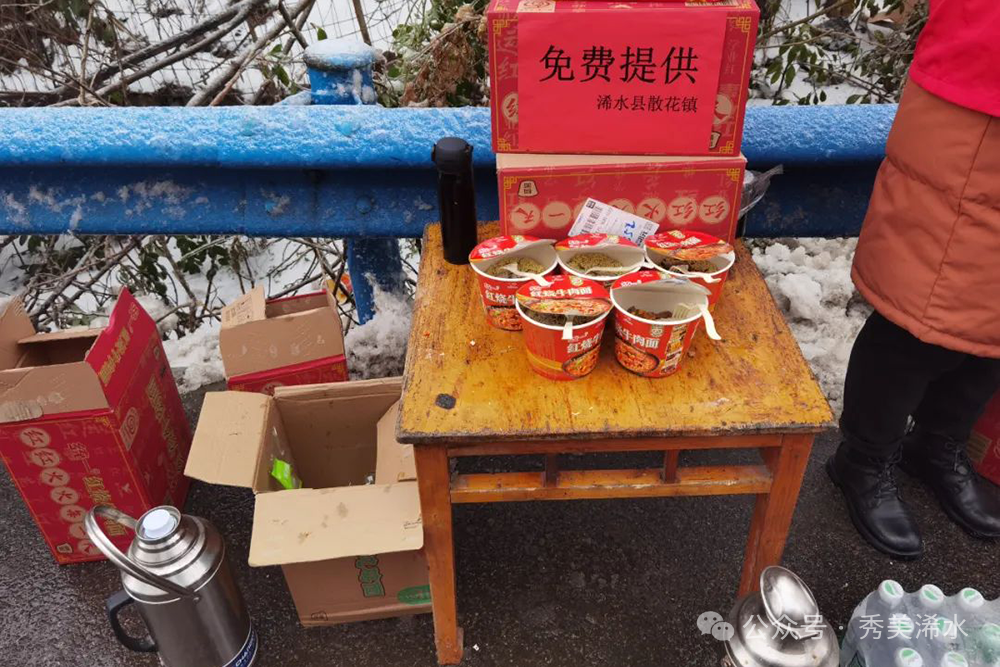 连日来,受低温雨雪冰冻天气影响,大广高速散花路段结冰,实施撒盐作业后,导致车辆通行缓慢。散花镇党委政府得知情况后,迅速反应,组织工作人员除草开路,第一时间走上高速,积极疏通道路的同时,还为司乘人员送去了方便面、餐包、热水等暖心物资。