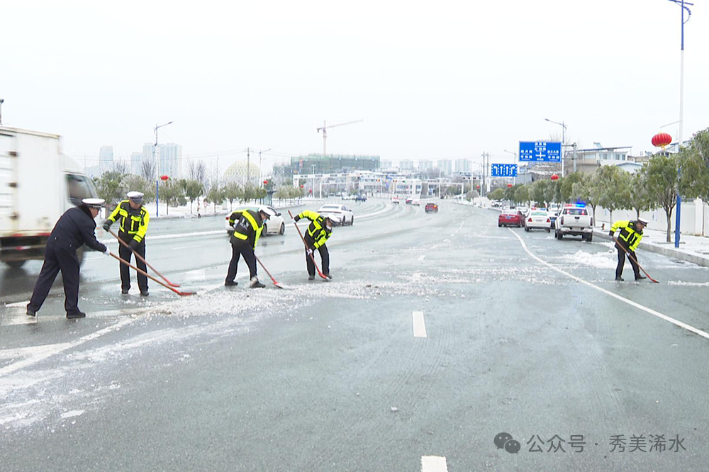 在寒冷湿滑的街道上,交警热火朝天地清理路面的积雪和路障,在大家的通力合作下,四桥路段的积雪被清理干净,路面恢复畅通。另外,在城区进出口和重点关键路段,交警人员也全天候坚守,他们指挥交通,提醒过往群众注意安全,守护群众平安出行。