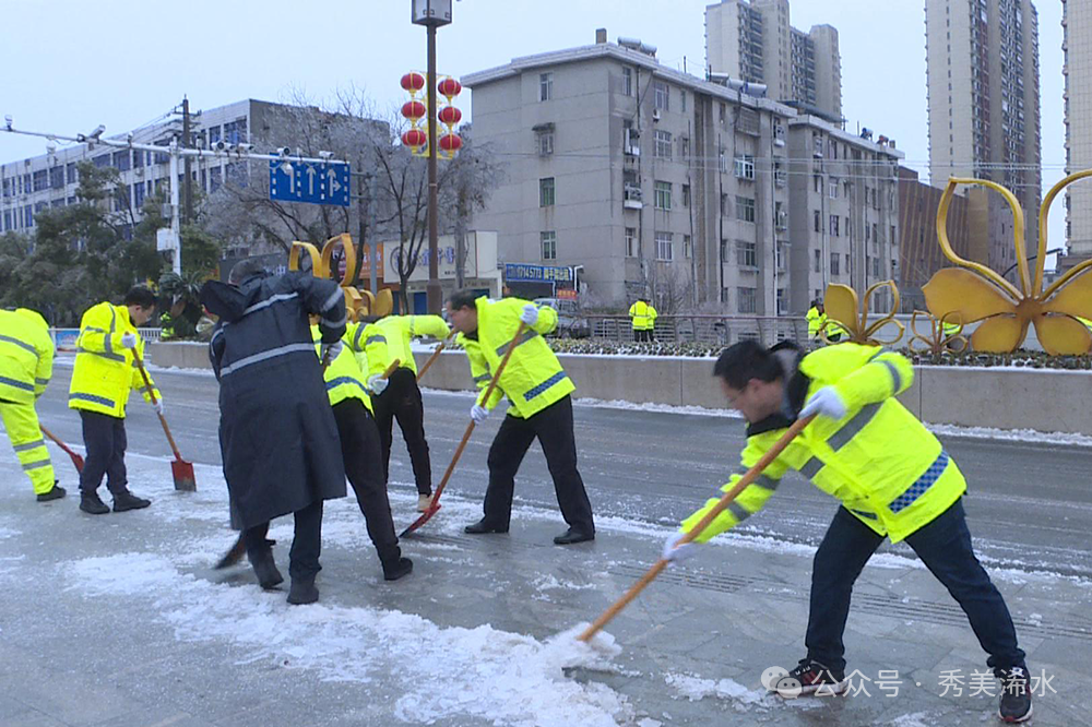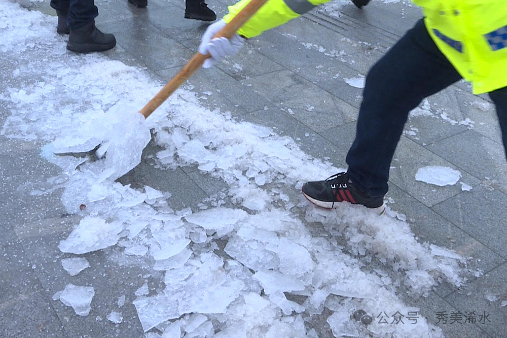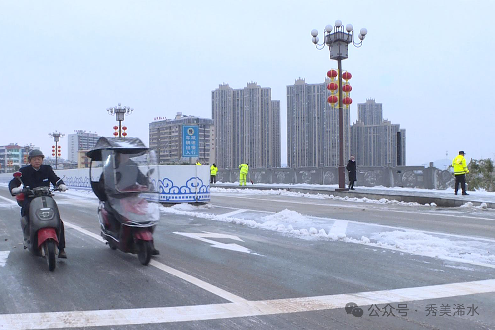 早上六点,天寒地冻。在城区一桥、二桥等等城区五座桥梁,记者看到,县交通运输局干部职工正有条不紊地指挥交通,清理路面上的积雪和冰块,原本被冰雪覆盖的道路又恢复了原来的本色,绿马甲在皑皑白雪映衬下,成为一道亮丽的风景。