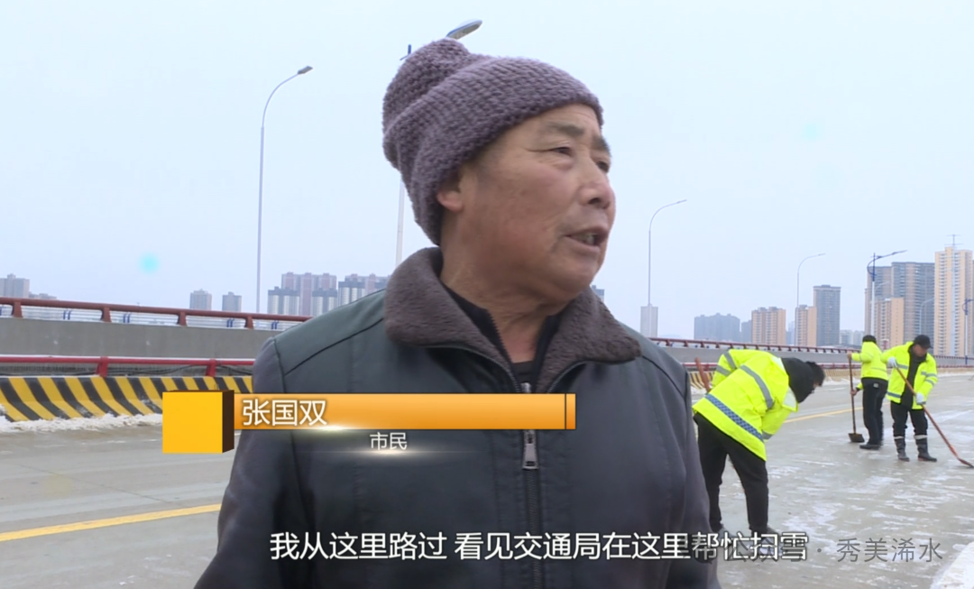 市民 张国双:我从这里路过,看见交通局在这里帮忙扫雪,为我们方便了出行。