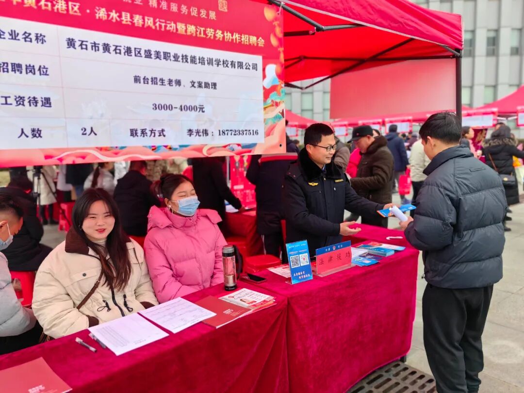 3月1日,浠水县与黄石港区联合开展春风行动暨跨江劳务协作招聘活动在浠水散花跨江合作示范区广场举办。本次招聘会共有100多家企业提供岗位3000多个,涵盖有医药、物流、智能制造、家居建材、服装等数十个行业,包括普工、技工、管理会计、工程师等不同类型的岗位。同时,还依托湖北公共招聘网、汽水信息招聘网等线上平台直播带岗,与线下展位招聘同步进行,现场吸引4000余人前来求职。
