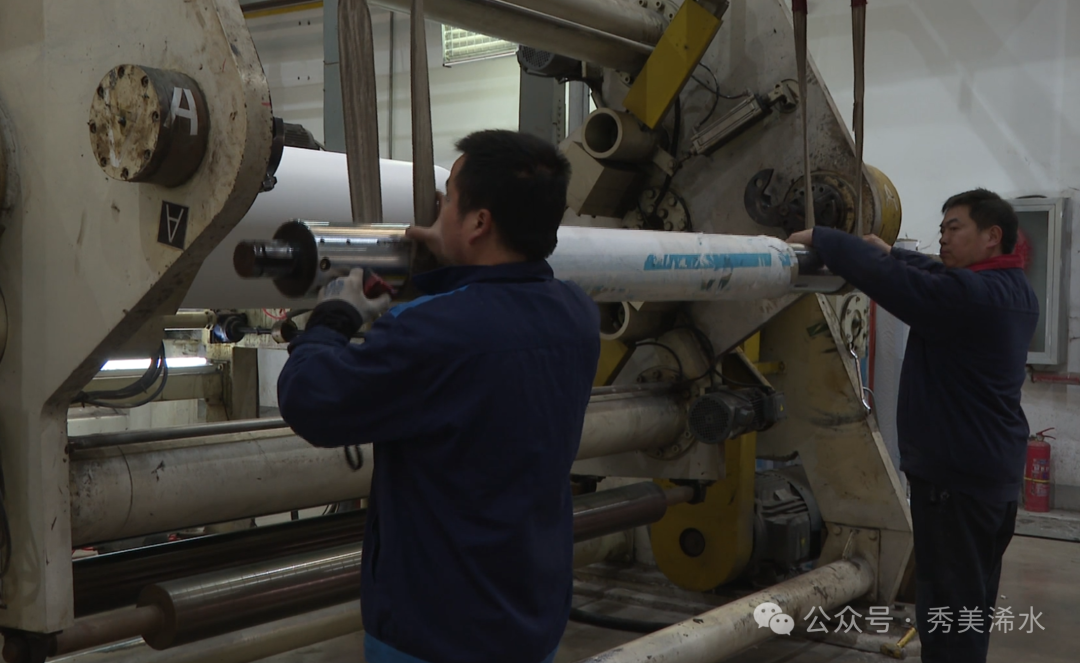 产品是企业的核心竞争力。2022年,邓超然在做足市场调研后,决心带领公司紧贴市场需求,新投入5000万元,建设两条生产线,打造龙头产品热敏纸。从设备的订购、安装,到人员的招聘培训,邓超然和工人们夜以继日地工作在一线。
