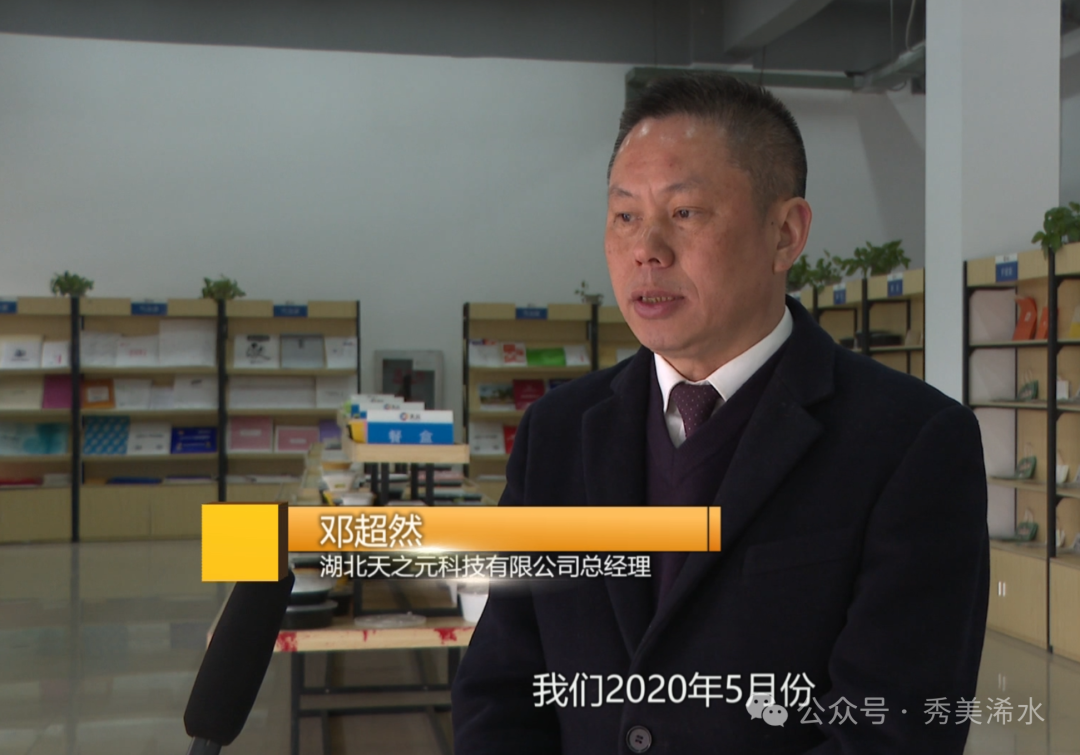 湖北天之元科技有限公司总经理 邓超然:我们顶着疫情的压力研发、投入、投产了降解餐盒、降解快递袋、降解包装袋,建了专门的生产线,生产车间,甚至是无尘车间,为我们接下来的公司的成长,打下了一个很好的产品基础。