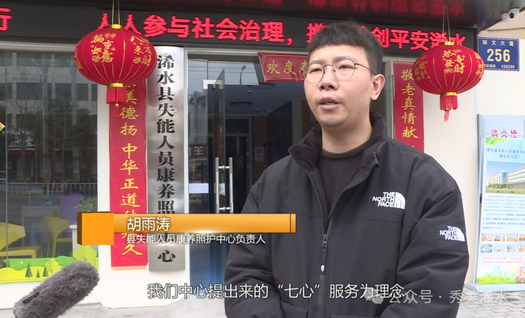 县失能人员康养照护中心负责人 胡雨涛:我们中心提出来的“七心”服务为理念,我们的护理员24小时陪同老人,同吃住在一起的,我们床前配了呼叫系统,30秒之内必须到岗。