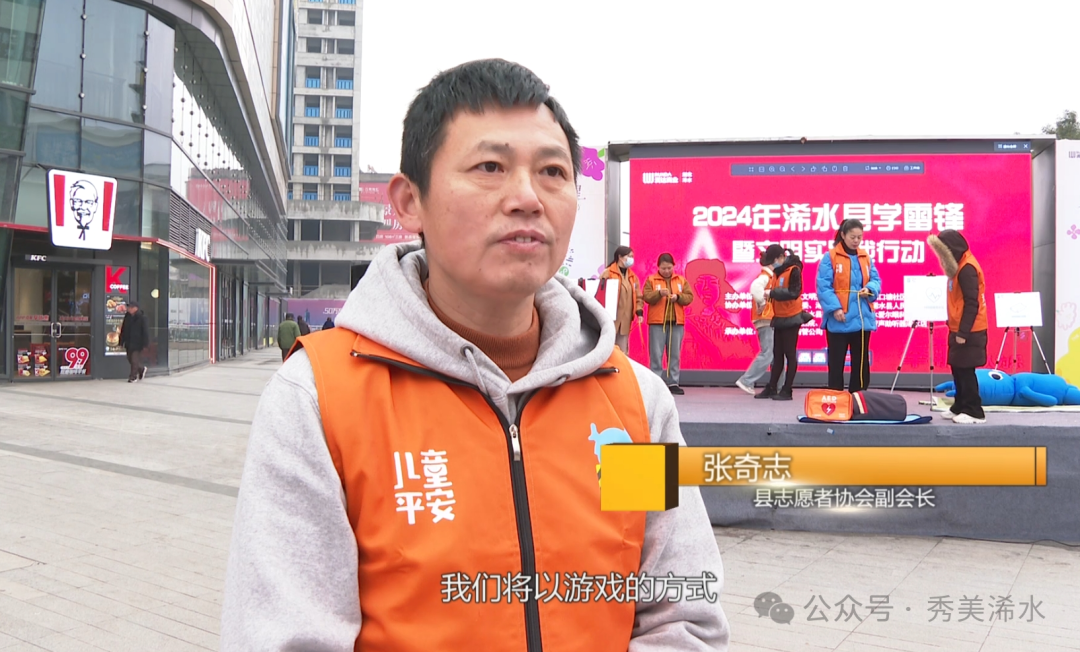 县志愿者协会副会长 张奇志:今天是学习雷锋的主题日,我们将以游戏的方式,而且我们有专门的道具,来教会广大的市民一些简单的减灾防灾小知识。
