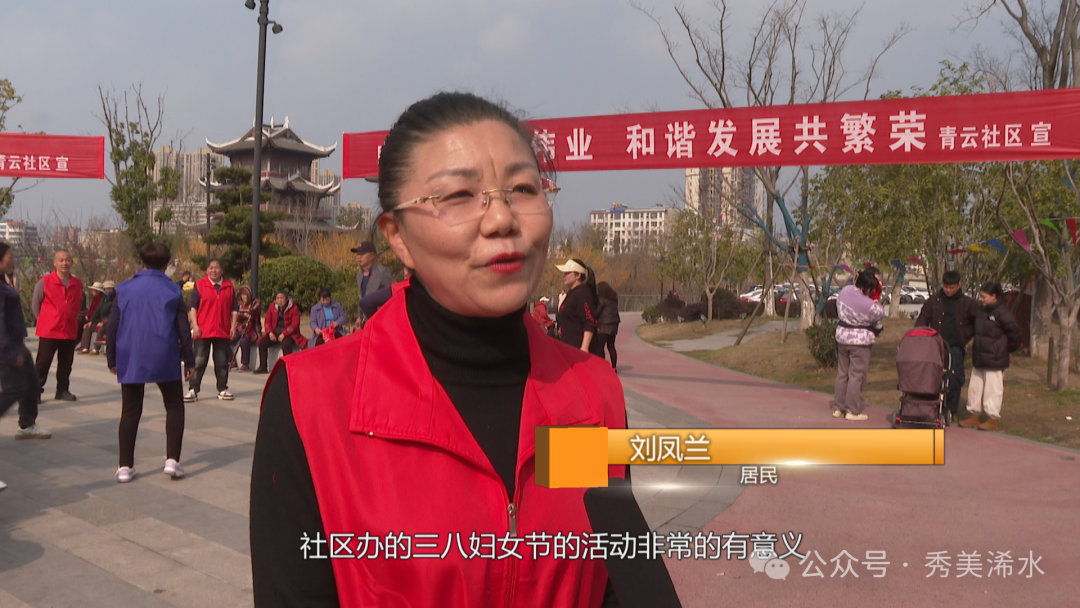 青云社区党总支副书记、副主任、妇联主席 周凌燕:我们通过这种形式与女同胞们欢聚一堂,共同分享节日的气氛,不仅为女同胞们提供了一个相互交流的平台,还促进了社区和谐发展。