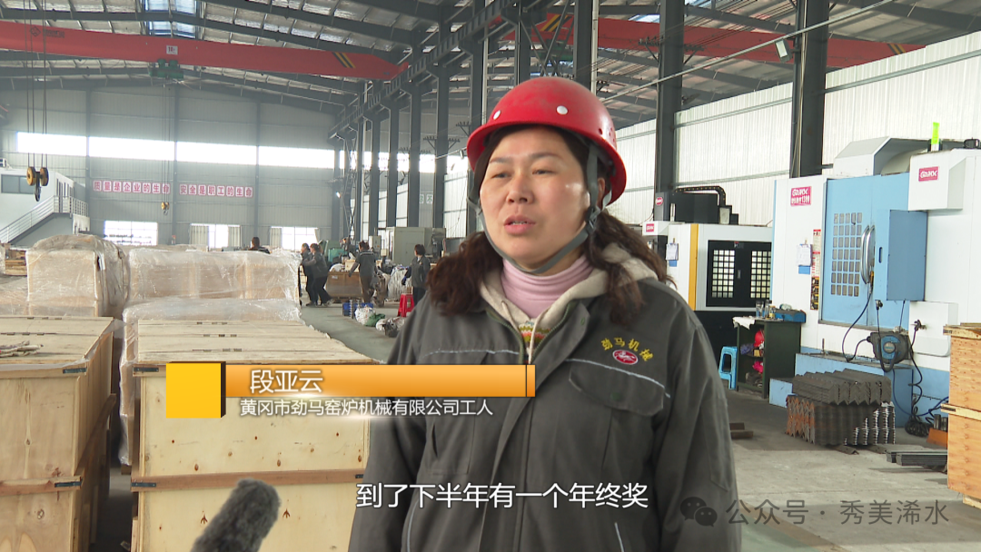 黄冈市劲马窑炉机械有限公司工人 段亚云:员工的工资,计件能达到七八千,到了下半年有一个年终奖。