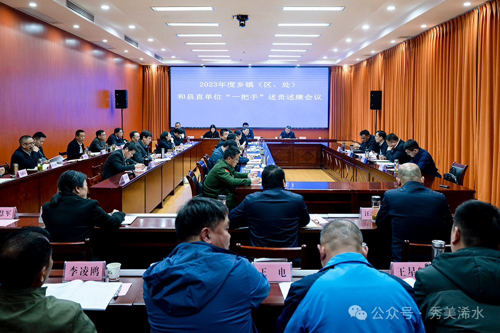 3月14日下午,我县召开2023年度乡镇(区、处)县直单位党委(党组)书记述责述廉会议。县委书记陈正红主持会议并讲话,他强调,要深入学习贯彻习近平总书记关于党的自我革命精神的重要思想和习近平总书记在二十届中央纪委三次全会上的重要讲话精神,认真落实党中央决策部署和省委、市委工作要求,压紧压实全面从严治党政治责任,以管住“关键少数”带动“绝大多数”,持之以恒净化优化政治生态,为全面推进浠水经济社会高质量发展提供坚强保障。县委副书记、代县长邓中麟出席会议。