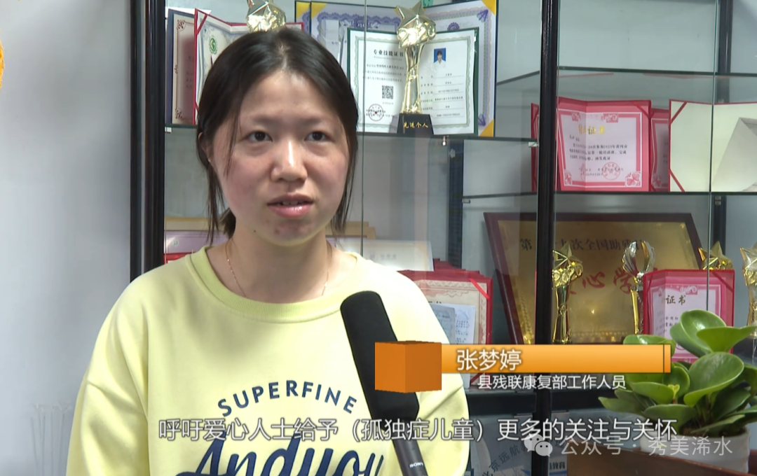 县残联康复部工作人员 张梦婷:呼吁爱心人士给予(孤独症儿童)更多的关注与关怀,能够伸出友爱之手和他们友好相处。