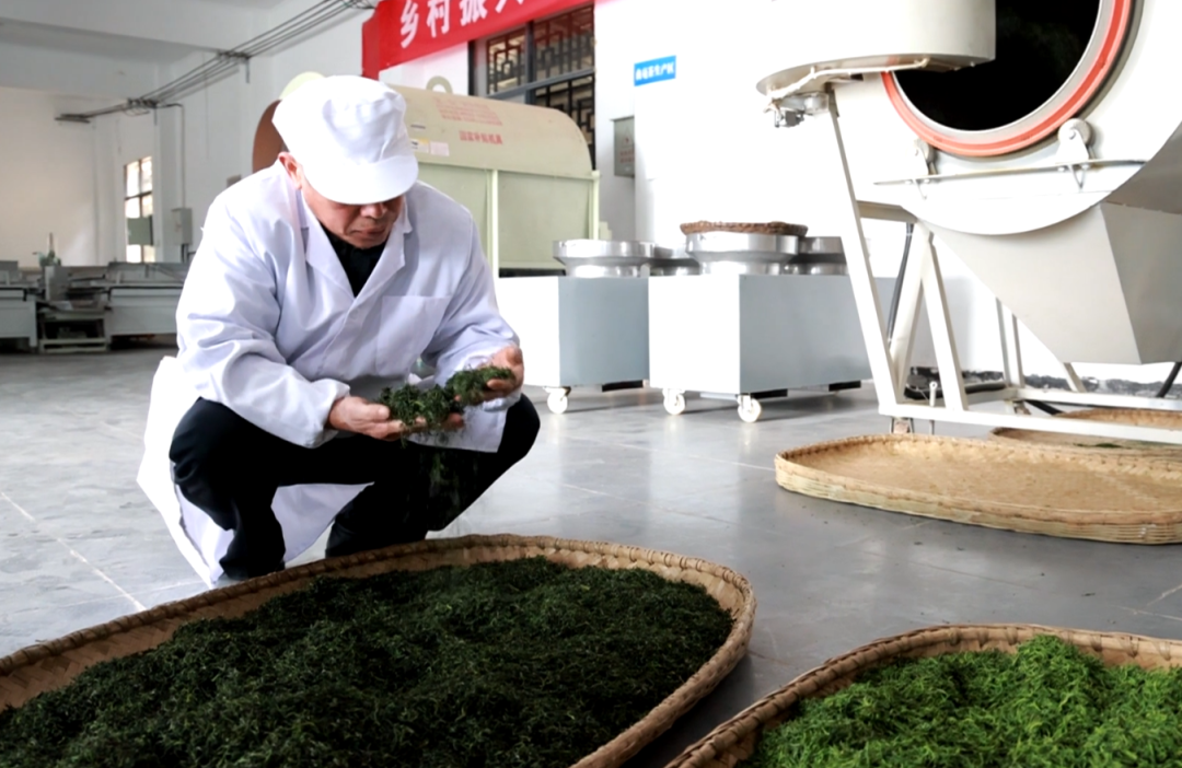 绿杨乡冷水井茶厂负责人 王华柏:我们制定了统一收购和采摘标准,海拔在500米左右的茶青收购价格在80到100块钱一斤,如果是200到350米这个地方的茶青我们就40到60块钱一斤,我们把收回来的茶青通过专业工人制作成成品以后,再用我们的“擂鼓岩”这个品牌包装统一销售。