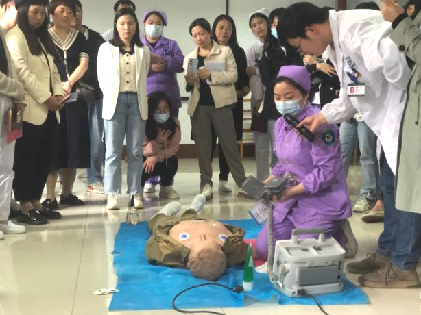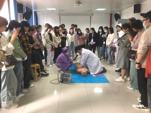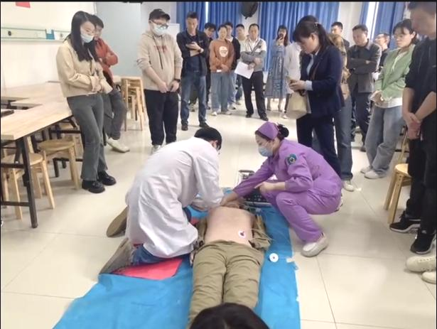 本次培训中,总医院(人民医院)急诊科骨干医护人员对突发事件现场的急救处置进行详细讲解,并就徒手心肺复苏及急救车内除颤仪的使用进行了现场演练。培训内容重点突出、通俗易懂,现场学习氛围浓厚。